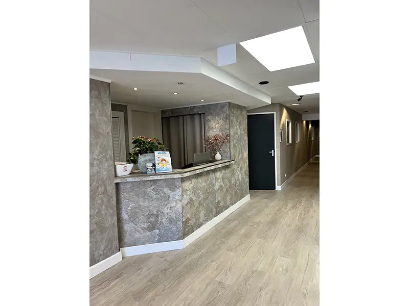 - Gezamenlijke ontvangstruimte met balie, toilet en keukenruimte